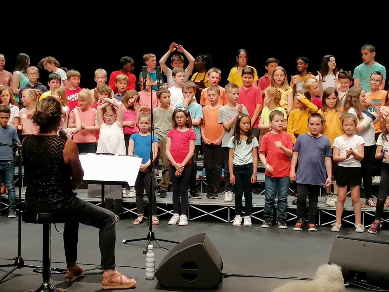 Cette année, les enfants de CE-CM ont pu participer à “Choeur d’écoles” : aboutissement d’un travail de toute une année, où ils ont dû mémoriser les textes et les mélodies puis s’entraîner à la pratique du chant avec leur enseignante, Sophie LAGREE. Ils ont eu plusieurs répétitions avec une chef de Choeur. Leur prestation, le mardi 14 juin, à l’espace Glenmor de Carhaix, avec tous leurs camarades des autres écoles et accompagnés par deux musiciens, a fait la fierté de leur enseignante, de toute l’équipe pédagogique et de leurs parents. Ils ont vécu un moment inoubliable, où certains d’entre eux se sont révélés. Une magnifique expérience, qui se poursuit par l’enregistrement d’une chanson sur le futur CD “Choeur d’écoles” qui servira l’année prochaine.