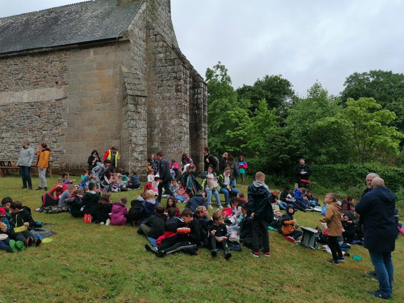 Comme chaque année, les enfants des écoles catholiques du secteur de Rostrenen se sont retrouvés à Plussulien à la chapelle Notre-Dame de Sélédin, après une marche, pour une célébration sur le thème “vous êtes le sel de la vie” avec la présence de Monseigneur Denis Moutel, prêtres, dont notre curé Gaëtan et diacres. Les enfants ont pu ensuite pique-niquer. Ce fut un beau moment malheureusement écourté en raison d’une météo très pluvieuse. Nous avons dû renoncer aux activités prévues autour de la chapelle pour les maternelles et sur le site archéologique de Quelfenec pour les cycles 2 et 3.